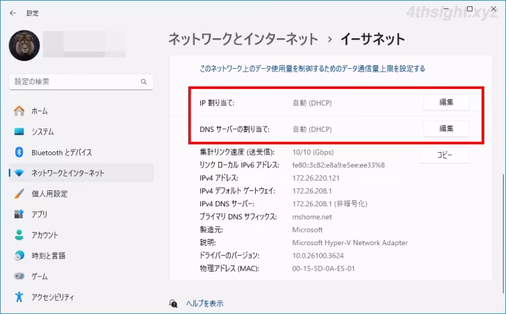 以前のWindowsと同じように、ネットワークアダプターのプロパティ画面でIPアドレスを手動で設定することもできます。
